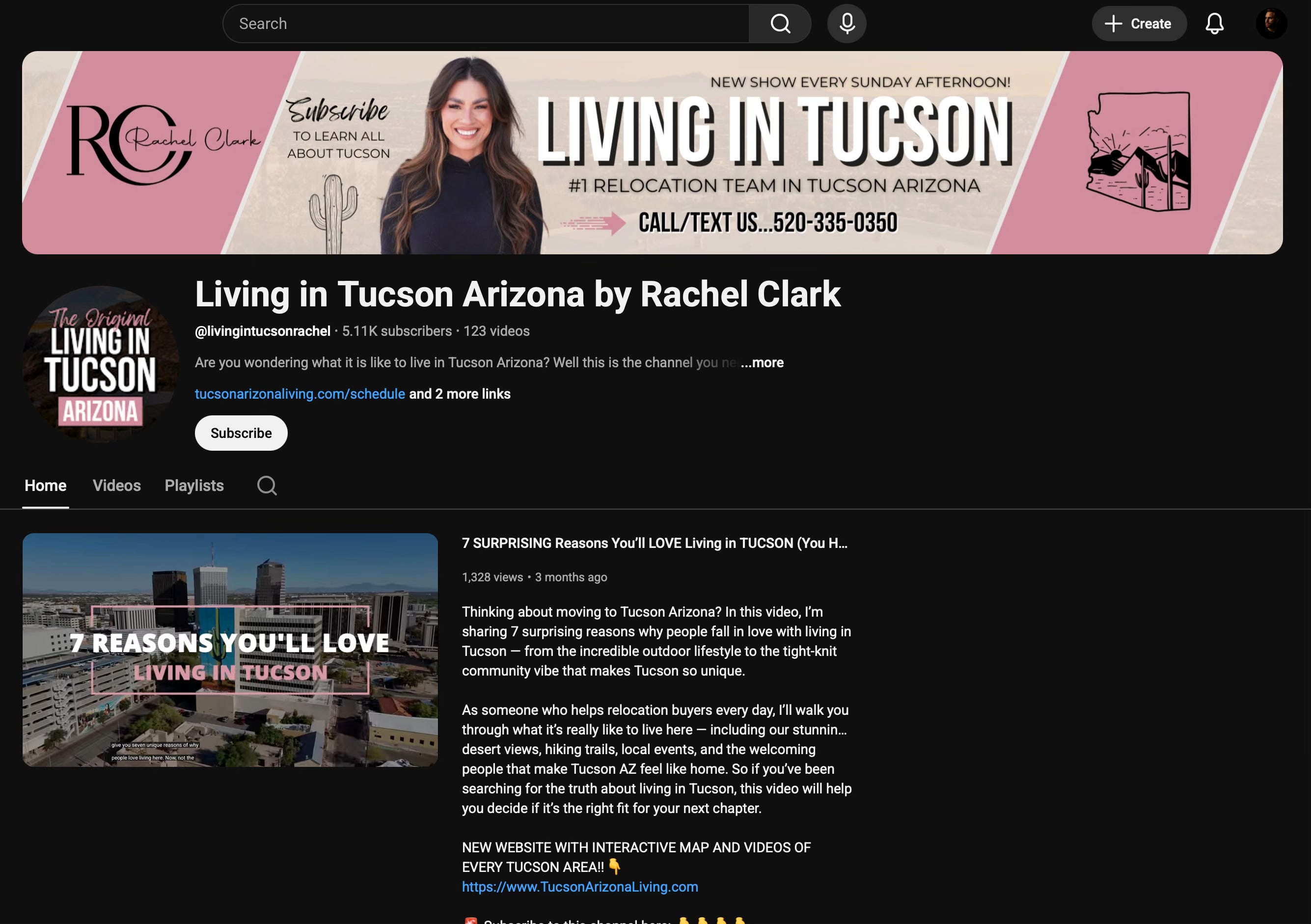 A real estate agent in Tucson named Rachel Clark runs a YouTube channel focused on new construction communities and relocation guidance. Weekly uploads, every Sunday. Walking tours of model homes, area overviews, pros-and-cons videos about living in Tucson, builder-by-builder breakdowns with specific pricing. Her site has a Domain Rating of 0.9 and gets about 1 monthly organic visitor according to Ahrefs.